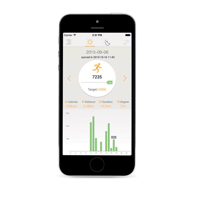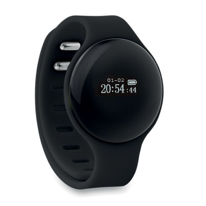 Bluetooth health wristband in silicone which you can track your steps, calories burned, your sports kilometers per day, your sleep, alarm mode, pedometer function, and income calling notice. Requires a free app (Very fit 2.0) available in both iOS and Android.