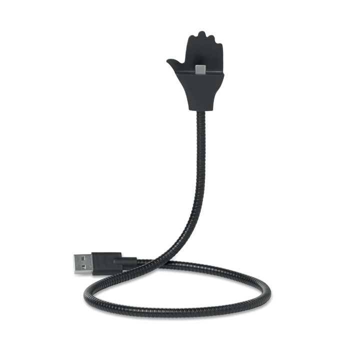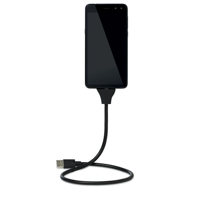 2 in 1 steel 2A charging and data cable in hand shape. Flexible stand up cable,360° rotating, multi-angle rotations for your preferred viewing angle.Can be used as stand, charging and data cable. Including clip with 3M sticker on the back. Suitable for Android Phones. Type C USB.