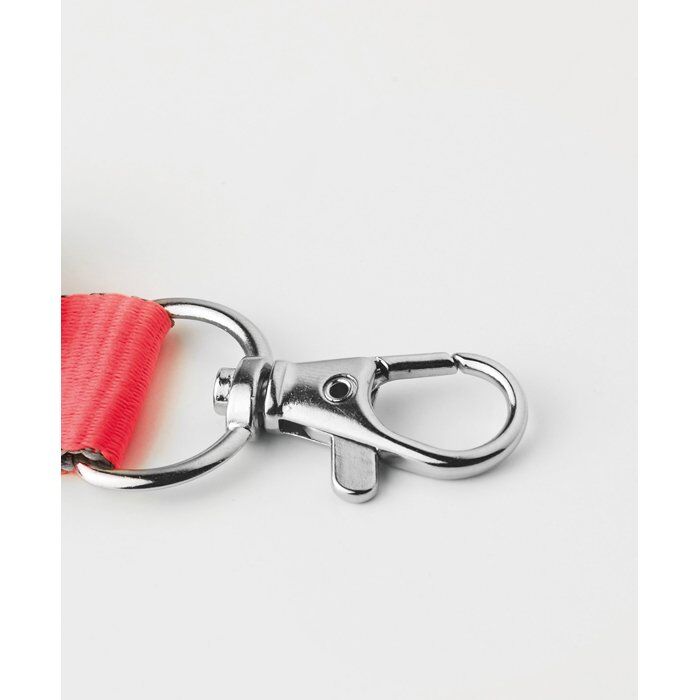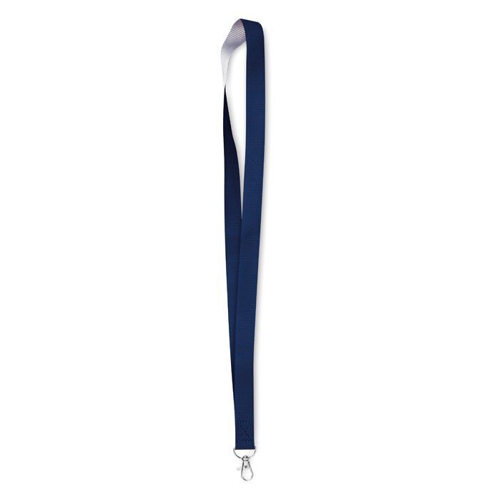 Two tone lanyard with metal hook and velcro closure.
