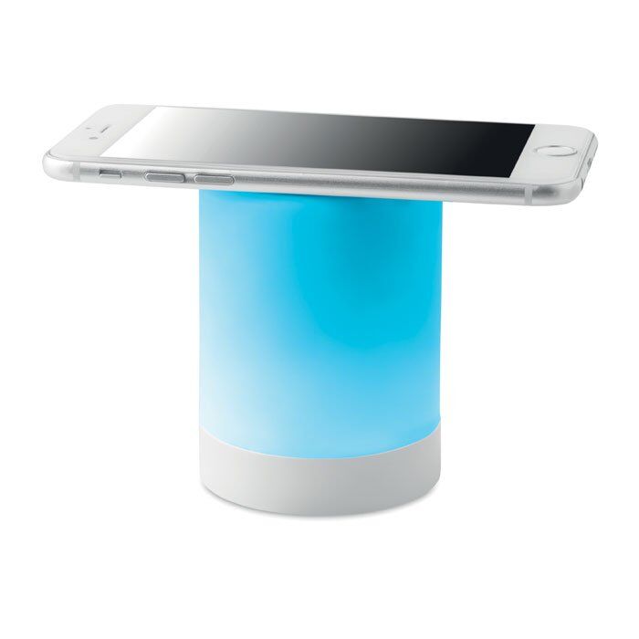 Wireless charging moonlight with integrated 8000 mAh Power bank. 6 colour changing light. Rechargeable Li-Ion 2000 mAh. Output: DC5V/1.0A. Compatible latest androids, iPhone® 8, 8S and X and above.