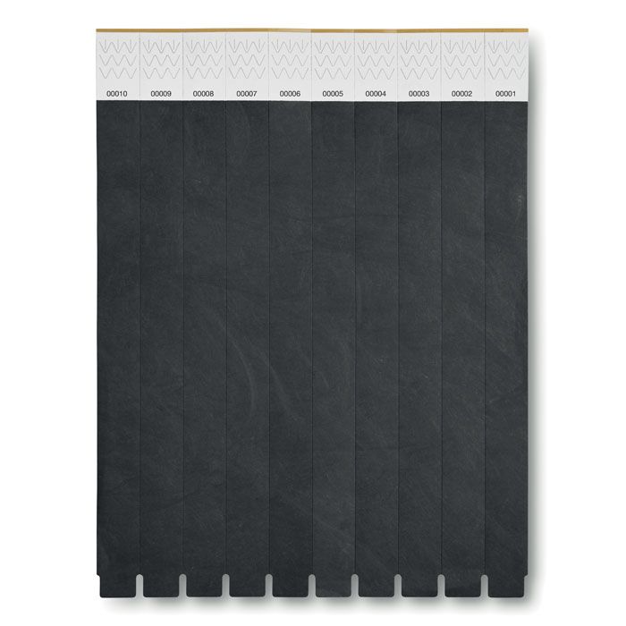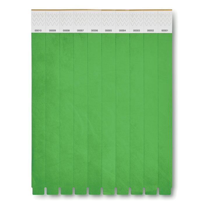 One sheet of 10 event wristbands. DuPont ™ Tyvek® 19mm wide. Including unique numbering on each wristband.